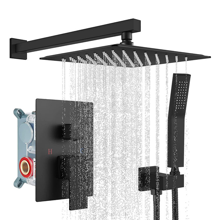 బాత్రూమ్ కాపర్ షవర్ మిక్సర్ కన్సీల్డ్ స్క్వేర్ షవర్ స్లయిడ్ బార్ లేకుండా రెయిన్ షవర్ సెట్