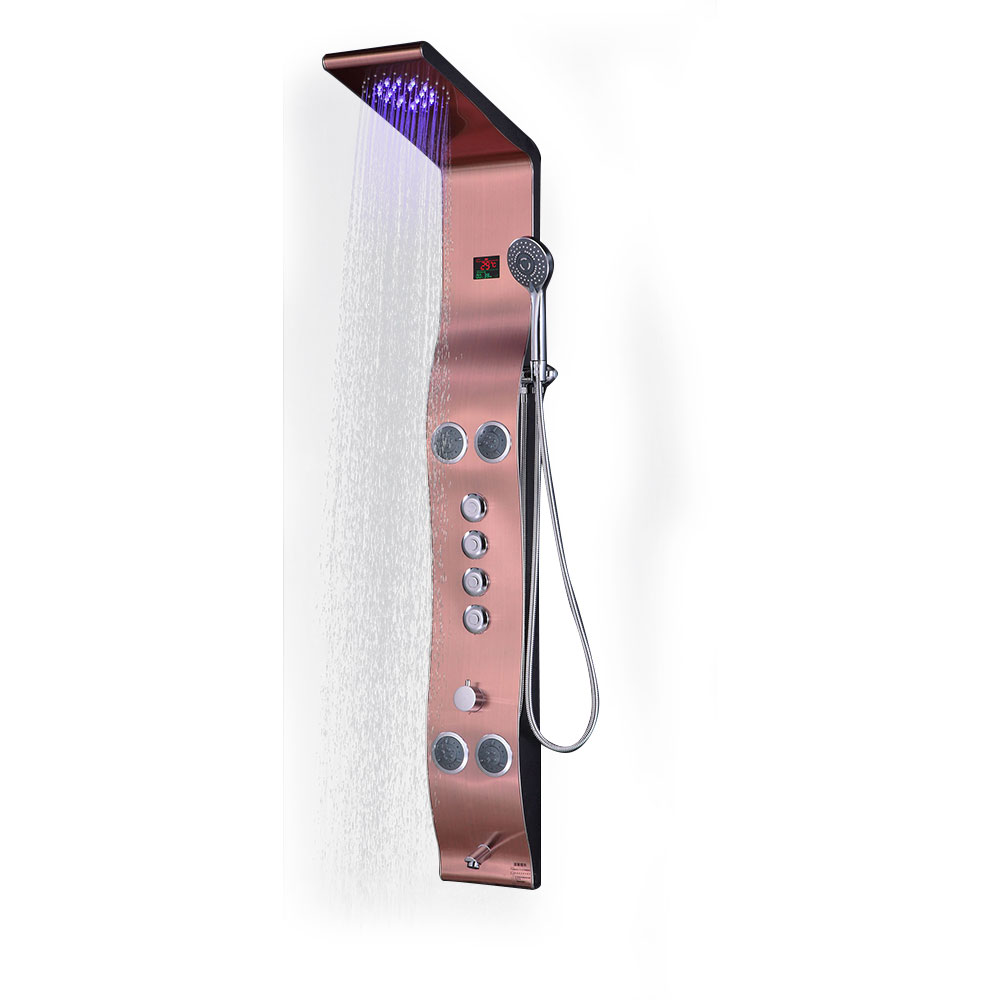 ఇంటెలిజెంట్ షవర్ ప్యానెల్లు మాట్టే నలుపు రంగులో ఉన్నాయి, ACS, CE, ISO9000, CUPC, WaterMark, SASO, NSF మొదలైన సర్టిఫికేట్లతో నాణ్యత 3 సంవత్సరాల పాటు హామీ ఇవ్వబడుతుంది. మా ఉత్పత్తుల గురించి విచారించడానికి స్వాగతం, మేము వీలైనంత త్వరగా మీకు ప్రత్యుత్తరం ఇస్తాము.